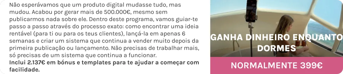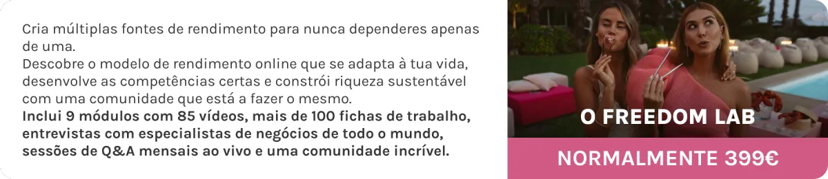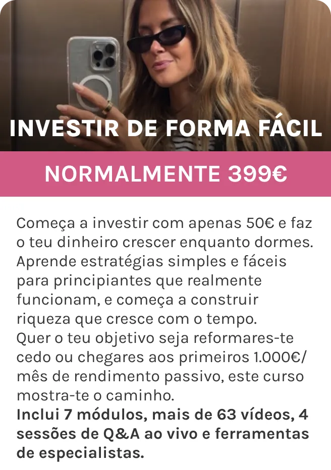 Deixa de trocar tempo por dinheiro. Cria múltiplas fontes de rendimento que te pagam de forma recorrente, investe como uma profissional e constrói o tipo de riqueza que muda tudo.