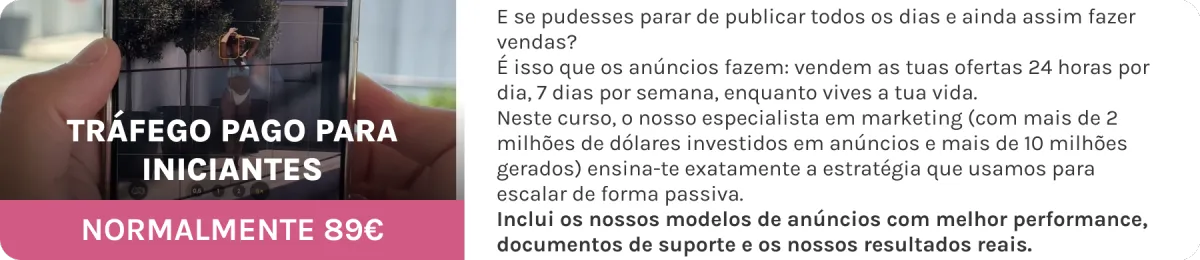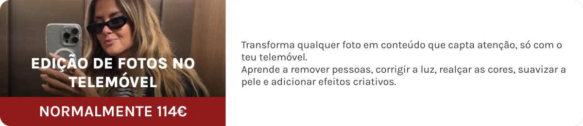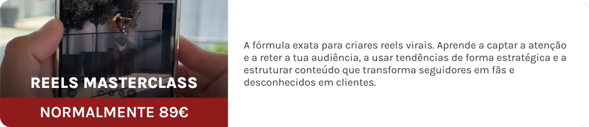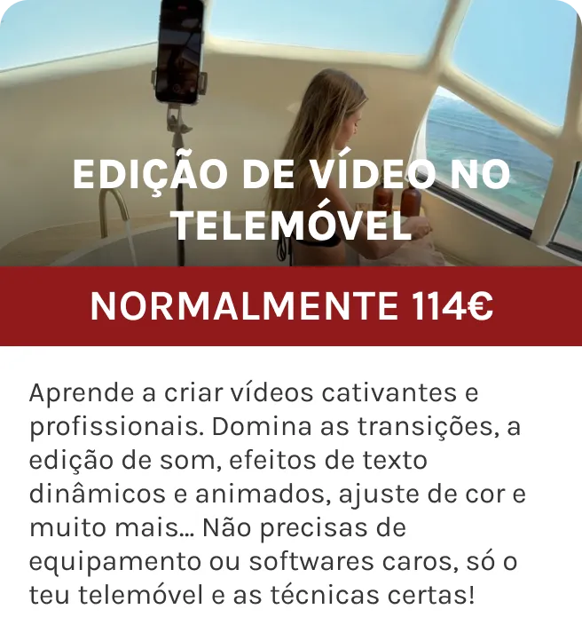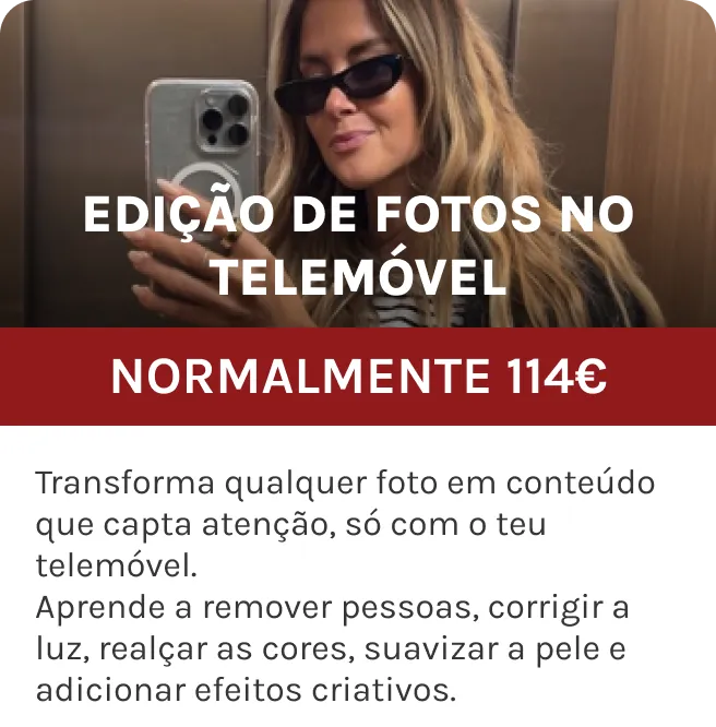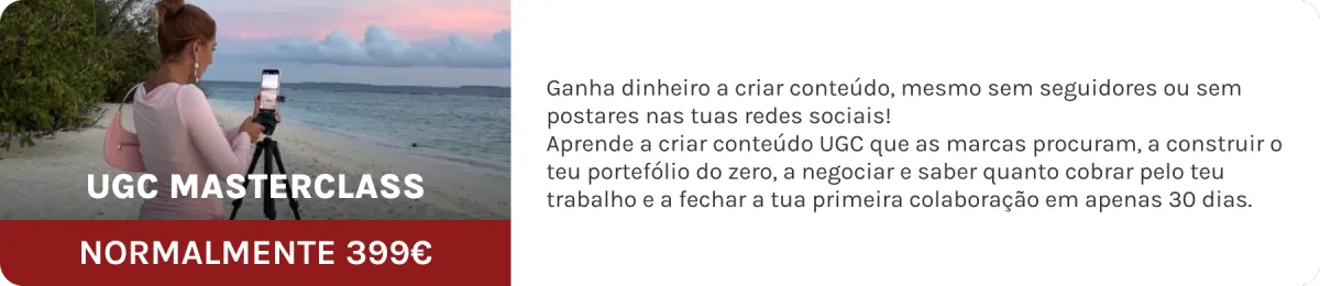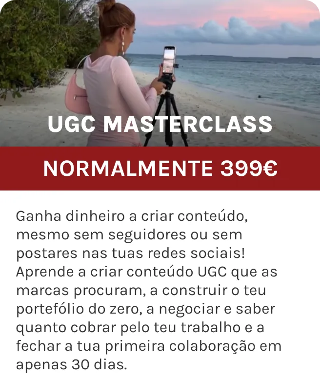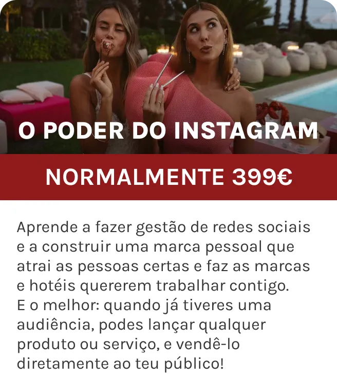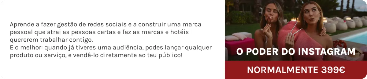 Cria conteúdo que te traz parcerias pagas com marcas e hotéis, aprende a fazer gestão de redes sociais ou a crescer a tua audiência para teres liberdade de trabalhar em qualquer lugar.